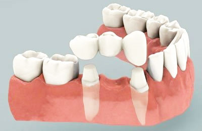 Dental bridges are used to replace the missing tooth space or the gap created between two teeth. We use synthetic crowns attached to the natural teeth to close this gap between two teeth. This is done to prevent the tipping of teeth in the space created by the missing tooth which then affects your appearance creating bone loss. We provide with you with different types of crown and bridge fabrication material.